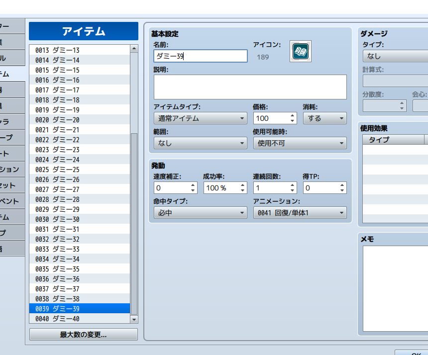 - トリアコンタン様の動的データベースプラグイン等でDB上の武器数値を変更