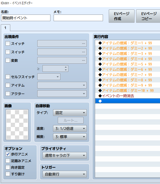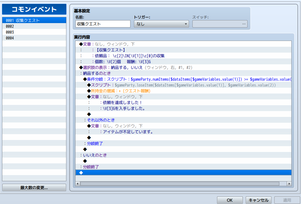 クエストの作成には変数の入力と、特定のコモンイベントの呼び出しという共通処理のみがあるという事に。