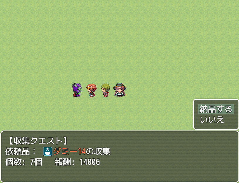 しかし、応用次第で複数のアイテムを要求させたり、報酬としてフラグのON・OFFも可能だと思うので、収集クエストをたくさん用意したい!って人は是非やってみてください。