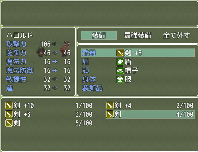 とりあえずこれを導入した時点で、同じ種類であっても武器は別々に管理される。