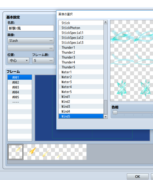 ツクールmvのアニメーションでは、画像を2種類選んで使用する事ができる